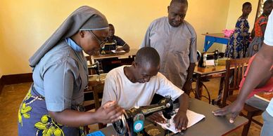 With thanks to a grant from the John Pitman Charitable Trust, a small tailoring project is underway. This program will teach tailoring skills to six young people with a disability, providing an income-generating opportunity for their future. This project has coincided with the expansion of Amani Mikese's Farm and the first three nuns to be based there. Lessons have started, with the first ones to practice following straight lines on paper using the sewing needle without thread.