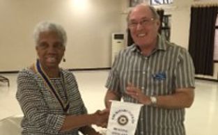 Leslie, a Rotarian himself, here presenting Dr Edie with Reading Rotary Club banner.